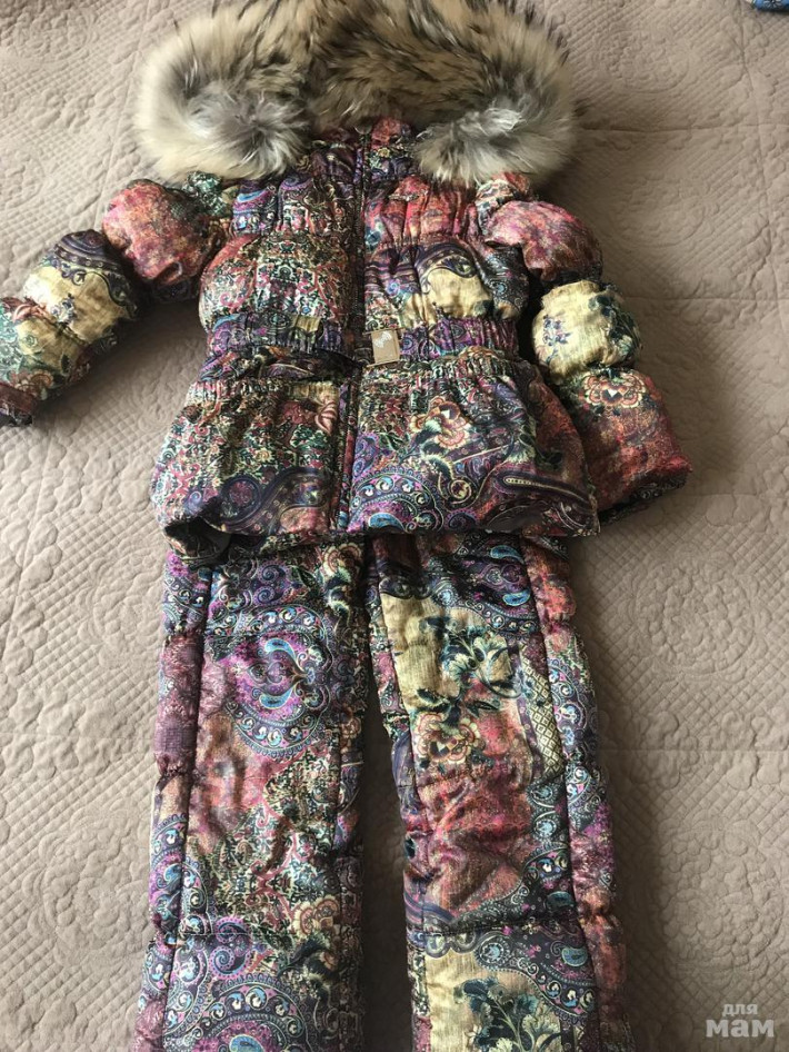 Очень теплый зимний костюм Via Lattea размер 122Состояние идеальное (но есть несколько царапин на пряжке(, опушка шикарная)Замеры: куртка: длина (по спинке)-51, по плечикам-33, длина рукава-47штаны (верхняя часть на флисе): шаговый-50, длина-79