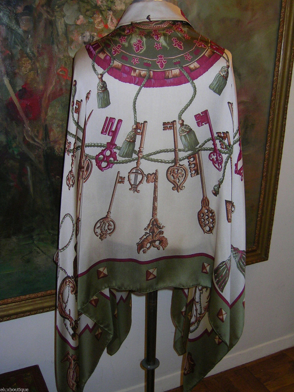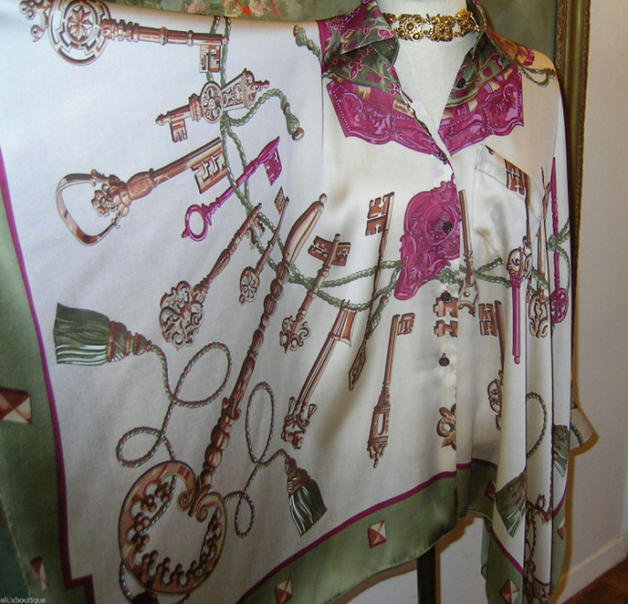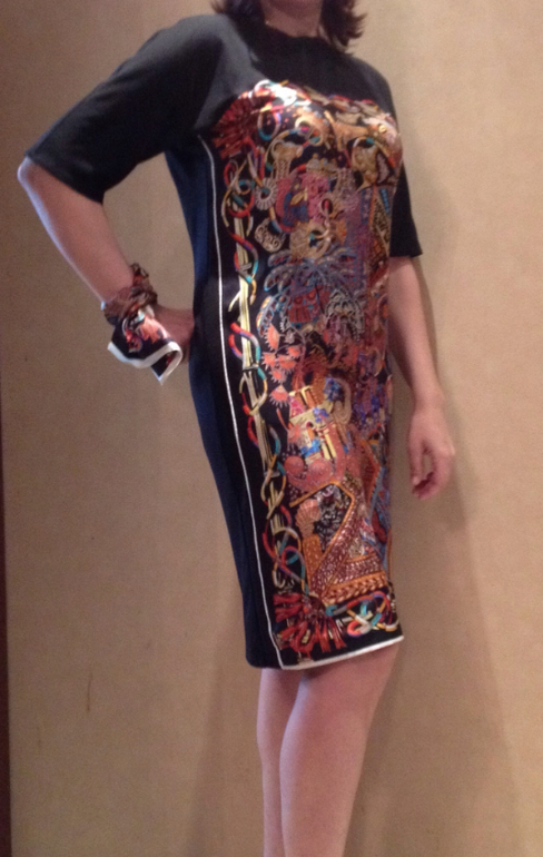 Татьяна, вокруг Вас столько платочков, что я не удержалась и все-таки высылаю Вам фото платья из платка Hermes (разумеется копия) и фото оригинала. Может кому-нибудь пригодится как идея для пошива.