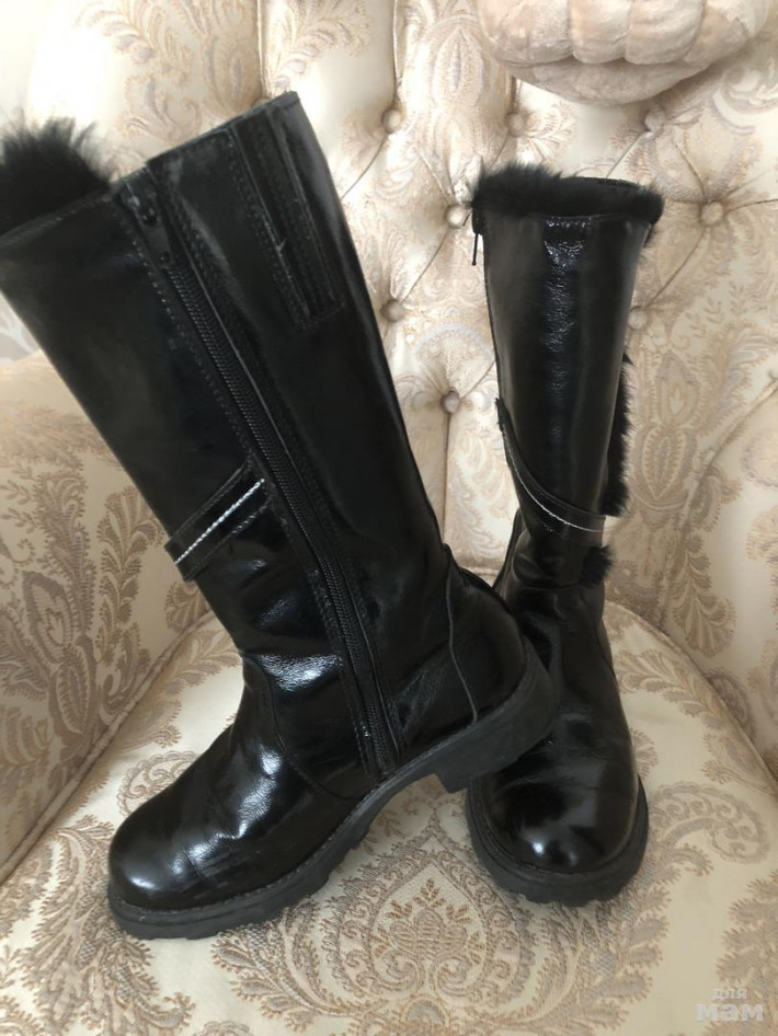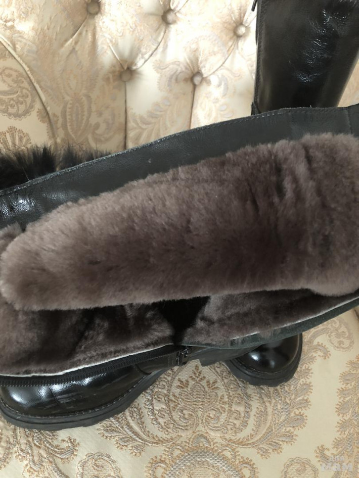 Верх натуральная кожа(лак), внутри утепленны натуральным мехом(очень плотный).Стелька тоже меховая 22,5см (есть фото).