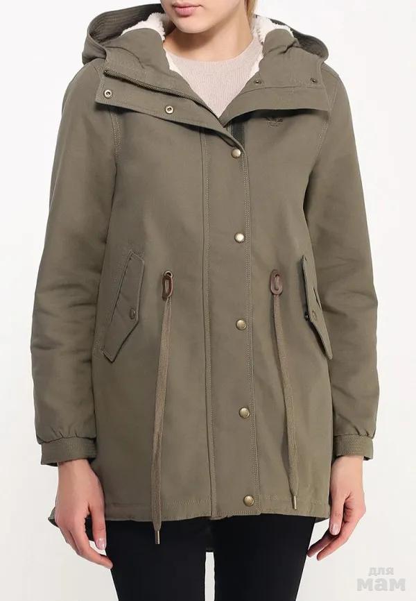 Парка adidas Originals выполнена из плотного хлопка цвета хаки, синтепоновый утеплитель. Детали: приталенный крой, застежка на молнию, ветрозащитный клапан на кнопках, изнутри спинка утеплена искусственным мехом, кулиска на талии, боковые карманы на кнопках, несъемный капюшон изнутри отделан искусственным мехом.