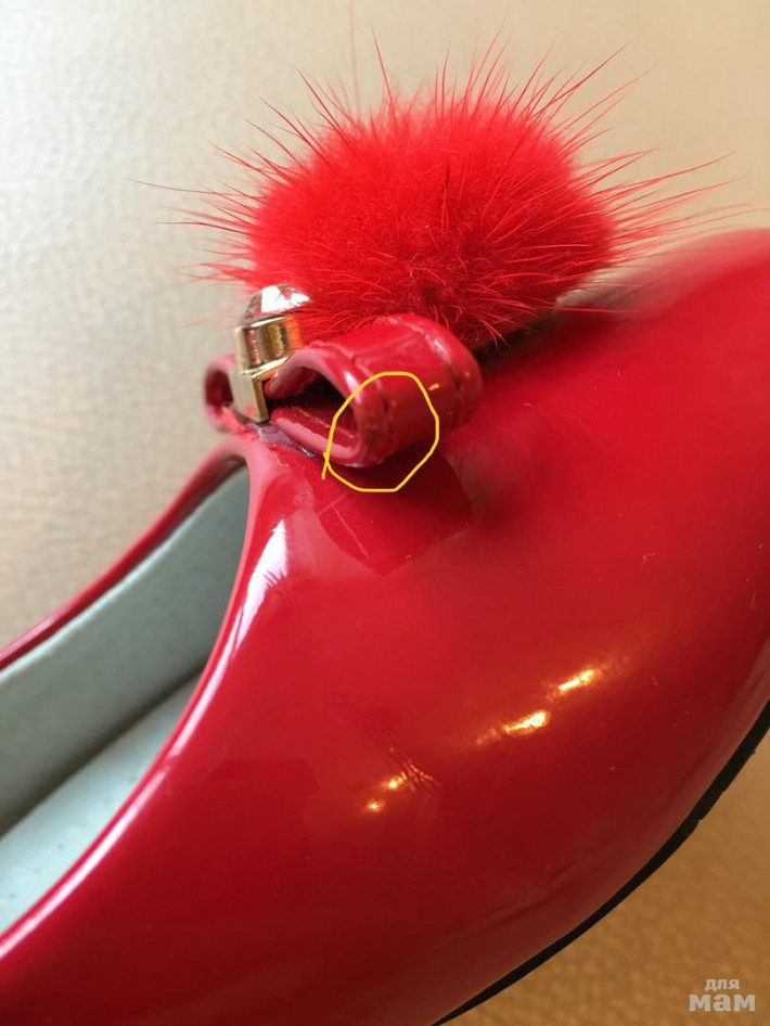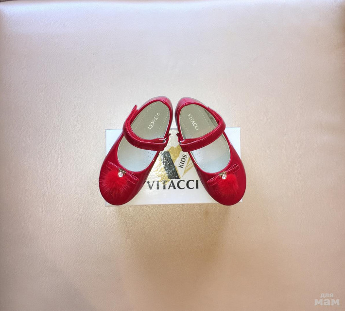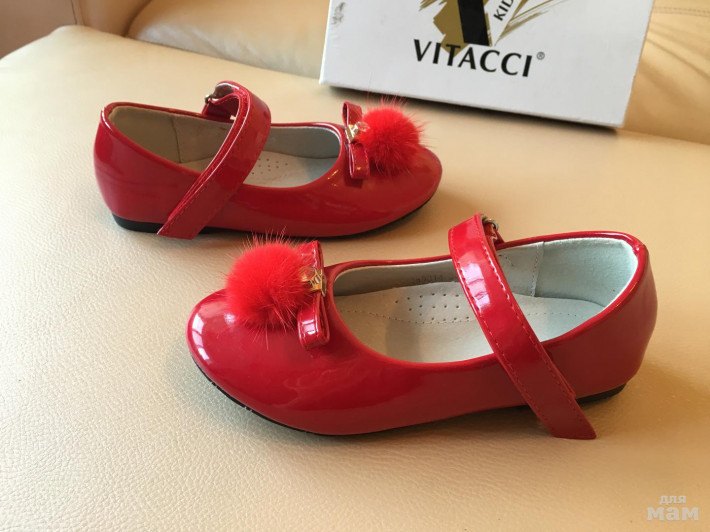 Шикарные нарядные туфельки известной фирмы Vitacci (дизайн этой модели, на мой взгляд, скопирован с Naturino), натуральные, не смотря на лак, мягенькие, есть супинатор. Состояние очень хорошее, одели пару раз в помещении, из нюансов обнаружила только подсдертый край бантика (обвела на последнем фото) и несколько штришков от подошвы, видно только, если рассматривать вблизи. Размер указан - 29, мы носили от 28, стелька - 18 см.