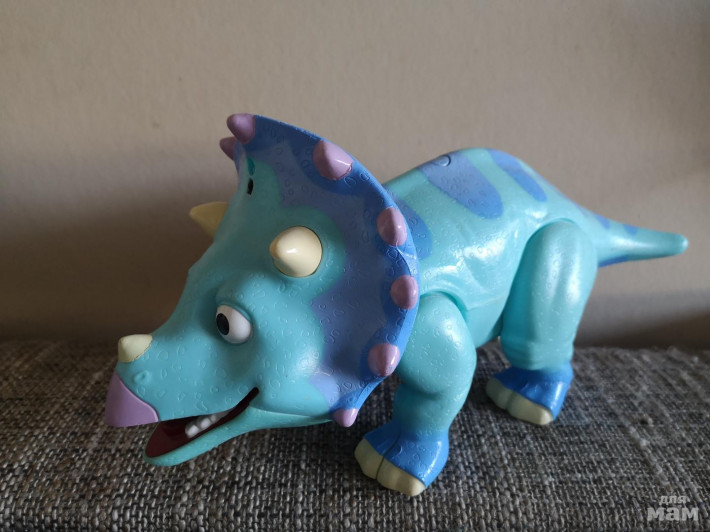 Интерактивный динозавр Тэнк - функциональный динозавр серии игрушек "Поезд Динозавров". Тэнк рассказывает о себе, и может разговаривать со своими друзьями! Для воспроизведения каждой фразы нужно нажимать кнопку на спине Тэнка. Функция try-me позволяет прослушать несколько фраз Тэнка - он поздоровается с тобой и немножко расскажет о себе. dino-train ico 50 дино-звуков и фраз dino-train ico технология SmartTalk для взаимодействия с другими динозаврами dino-train ico функция try-me (нажми меня) dino-train ico Если дотронуться до пасти Тэнка, вы услышите, как он аппетитно жует, а следом говорит «Ммм, вкусно!» dino-train ico у Тэнка подвижная голова, которой он бодается и издает громкий звук при движении. Если нажать на голову еще несколько раз, то Тэнк скажет «Удар головой! Ух ты, вот это удар головой!»