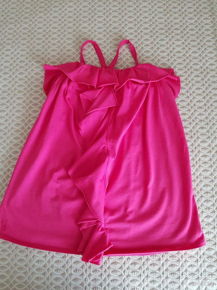 Очень красивый сарафанчик Ralpf Lauren. Подойдет на 100-110 рост. В отличном состоянии, но есть нюанс. Маленькая дырочка на украшении. хотела отремонировать, но померили - она попадает в складку и не видно при носке. В итоге так носили, не делала с ней ничего.