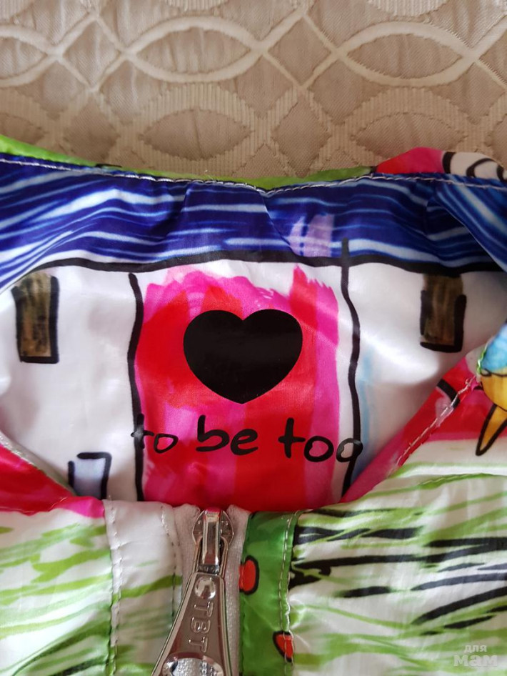 Стильная курточка To Be To Италия. С тоненьким слоем утепления. Размер 26. Мы одевали на 95 (подгибали рукав) и до 107 примерно. Состояние отличное, одевалась только на выход, не для прогулок. 3000 руб.