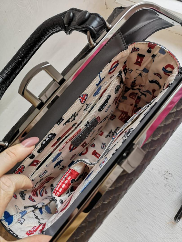 Культовая Vendula LOndon, куплена в Германии в прошлом году, не носила ни разу, н чека и бирки не могу найти. Съемный ремень в комплекте. Сумка из искусственной кожи, как вся Vendula. Внутри — подкладка, лицо марки. Детали объемные, вывеска двигается.