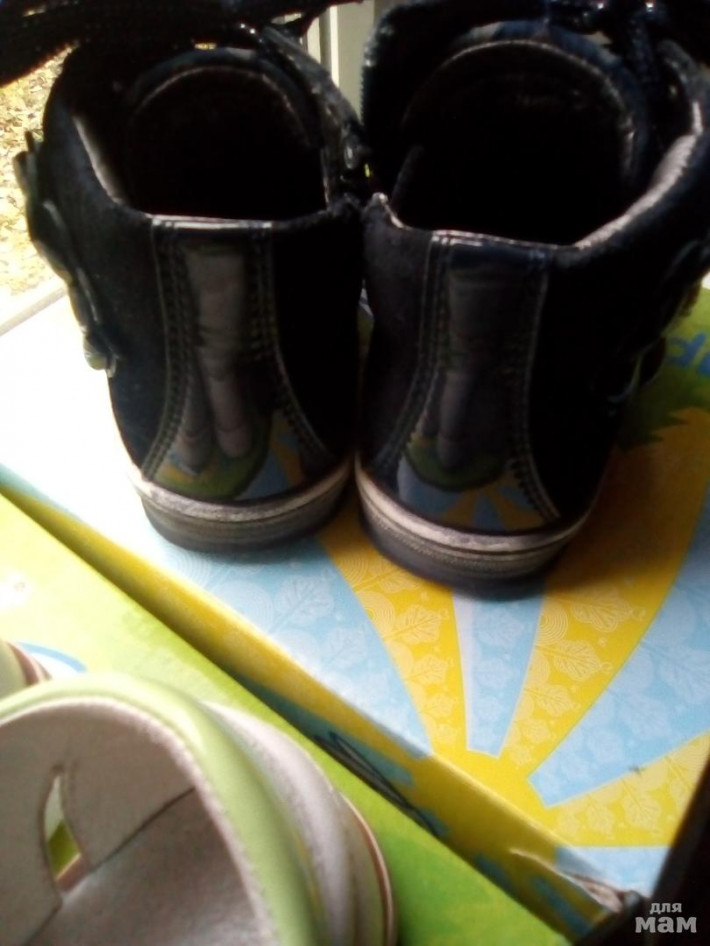 Две пары. Ботиночки р-р 27 почти в идеале(следы носки только на подошве), одели всего раза три. Внутри кожаная стелька, утеплены байкой,эффект потертой подошвы. Очень удобные и красивые. Босоножки "для сада" кожа, р-р26, полноразмерные. Цена за все 1000р+почта 200р