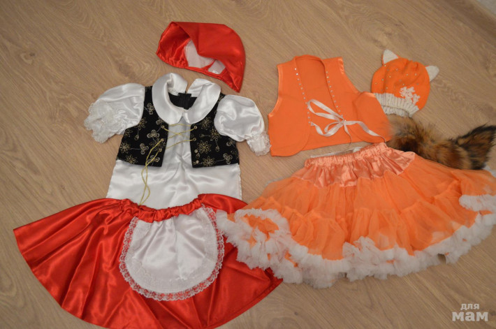 рост 110-122, у Лисы вост надо пришить или приколоть.