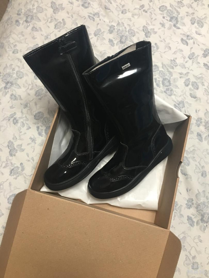 Новые сапожки, хорошо утеплены шерстью, лаковая кожа, по стельке 23см, удобные, отличный вариант для школы