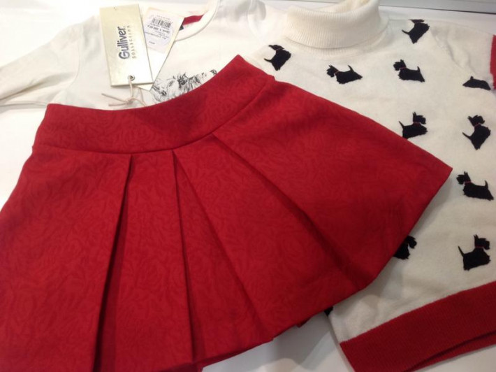 Комплектом-1300 Юбка одета один раз, как новая ( не стирана ни разу), жилетку два раза одели, тоже как новая. Всё размер 4г. На фото рост 106.