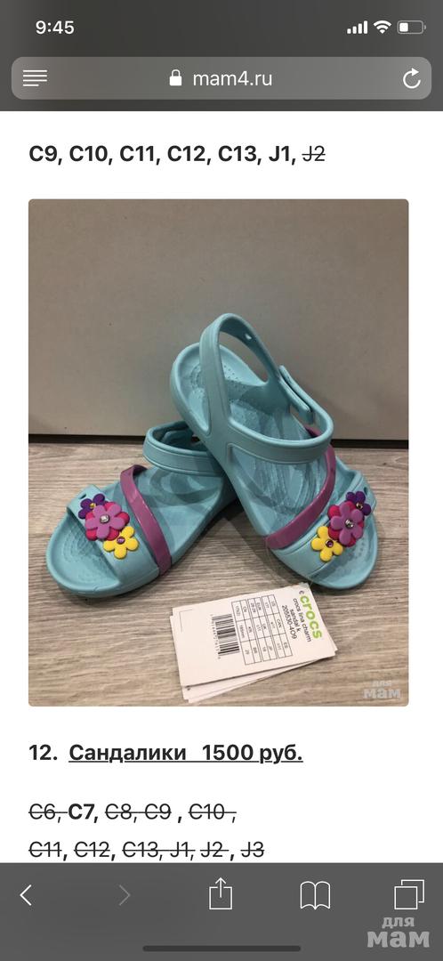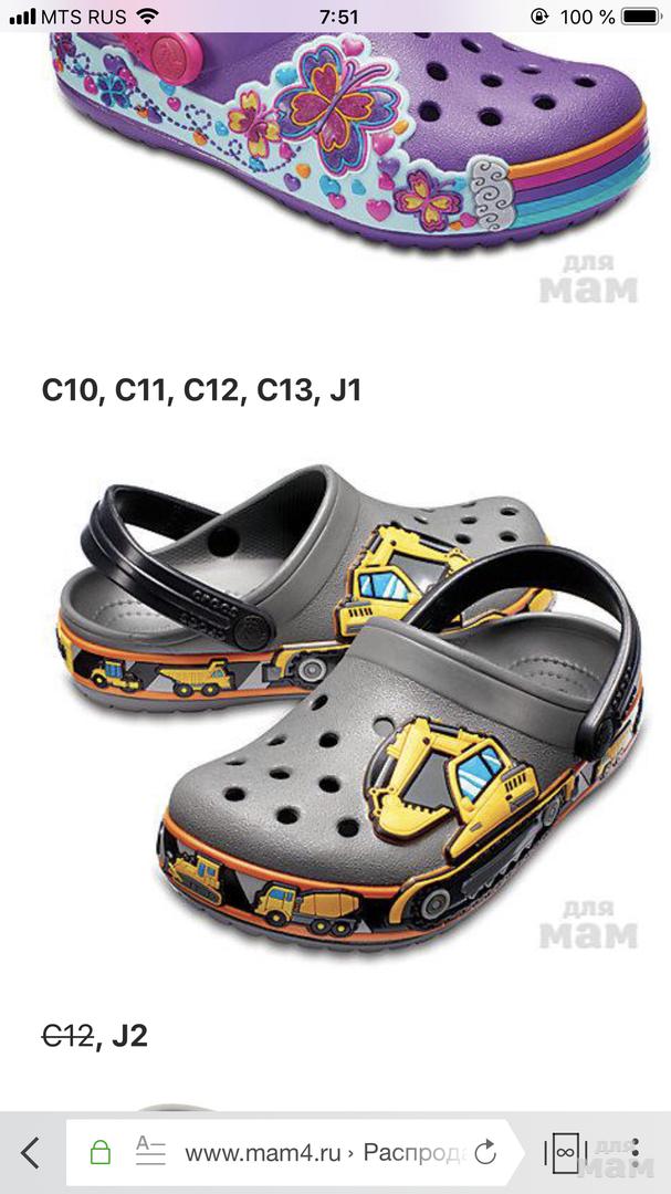Размерная сетка Crocs идет по длине стопы, а не стельки.