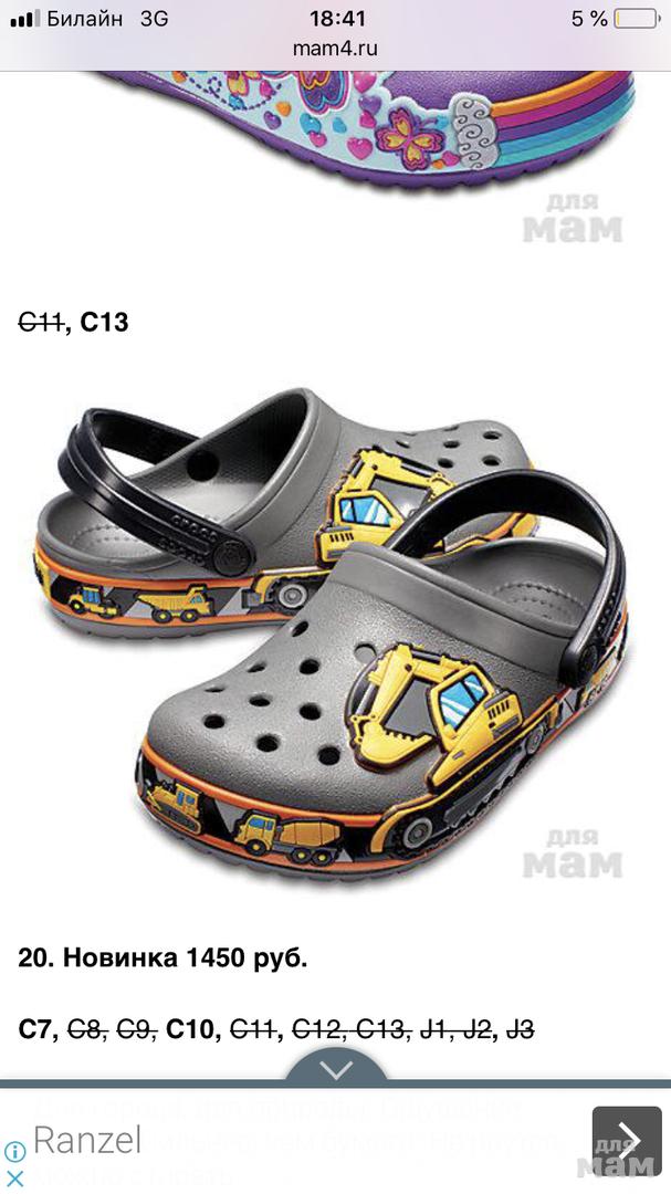 Размерная сетка Crocs идет по длине стопы, а не стельки.