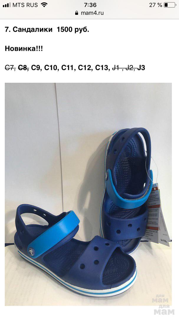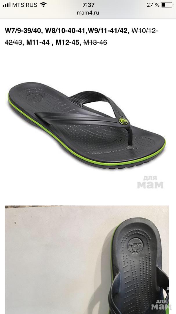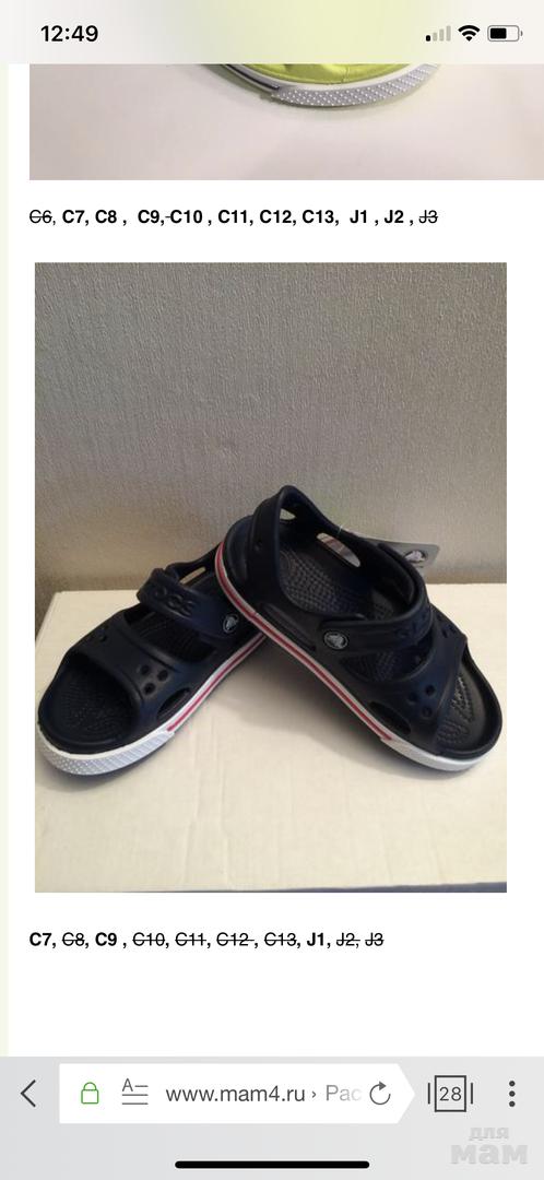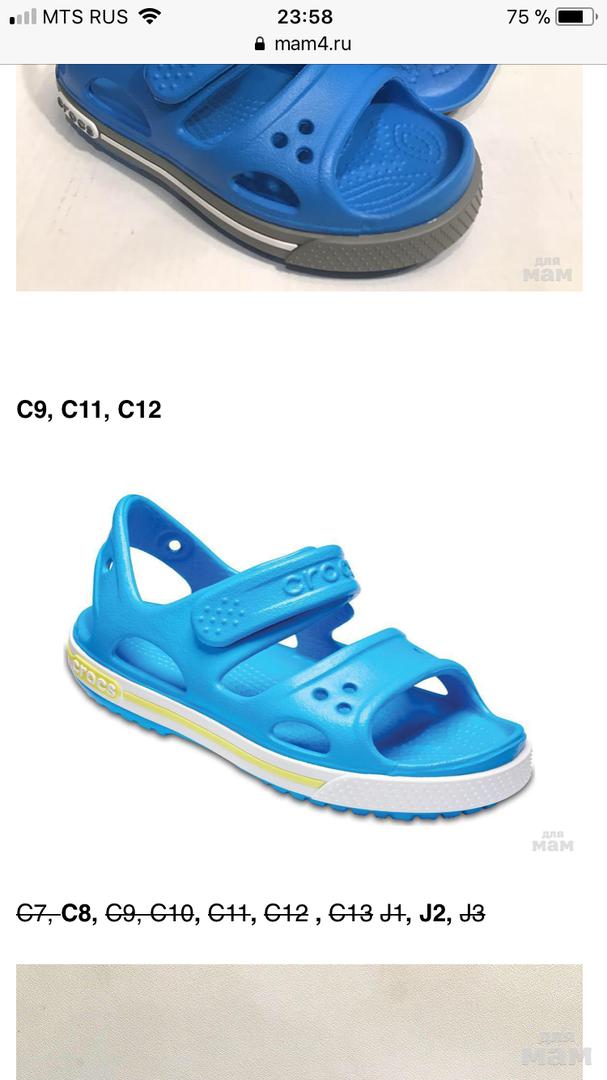 Размерная сетка Crocs идет по длине стопы, а не стельки.