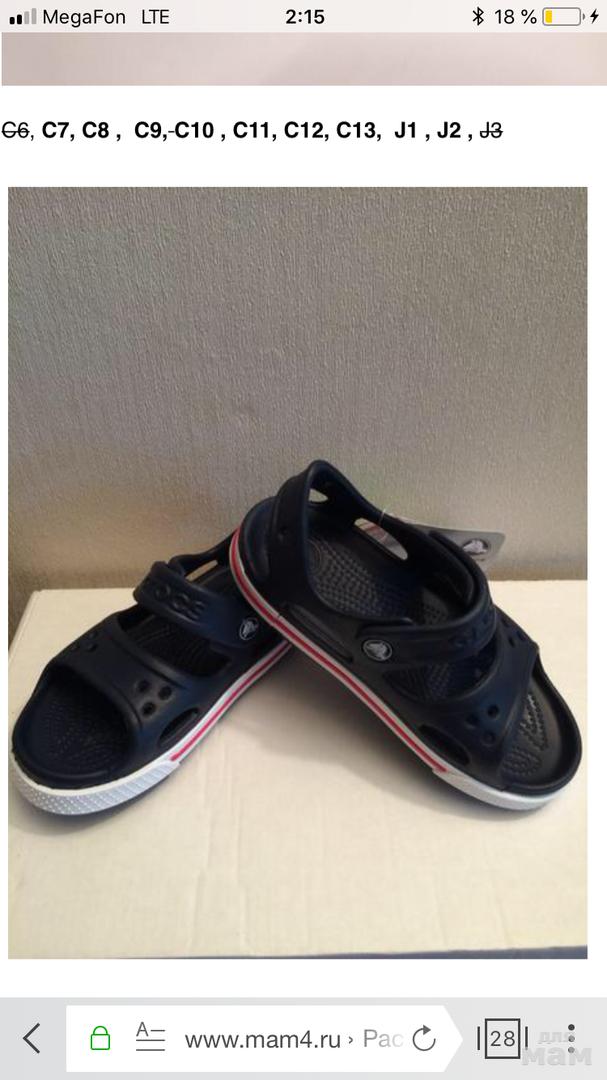 Размерная сетка Crocs идет по длине стопы, а не стельки.
