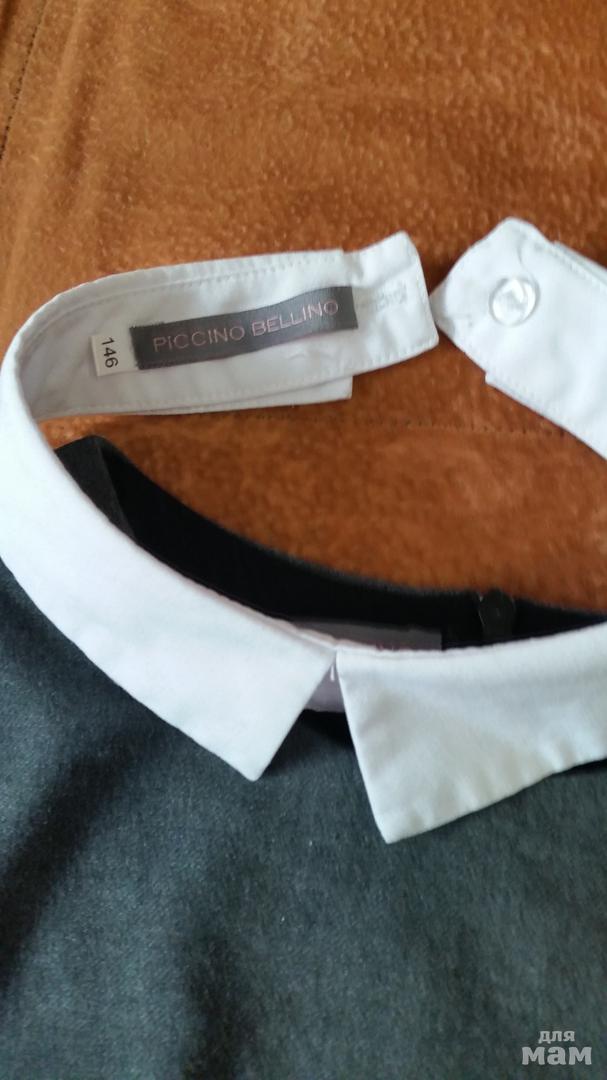 Продам платье школьное бренда Piccino Bellino. Одевали раз 5 за весь год. Воротник съемный, по бокам карманы. Состояние нового. В размер. Цвет серый. Ткань устойчива к пилингу.