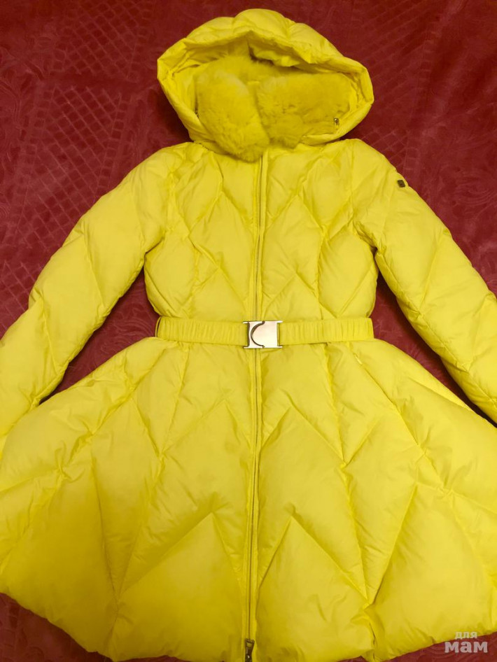 Очень красивое пальто,отлично набито пухом. Прекрасно стирается, не маркое. На фото рост ребёнка 156см. Длина 75см. Рукав. 59см( можно подвернуть на 11см)
