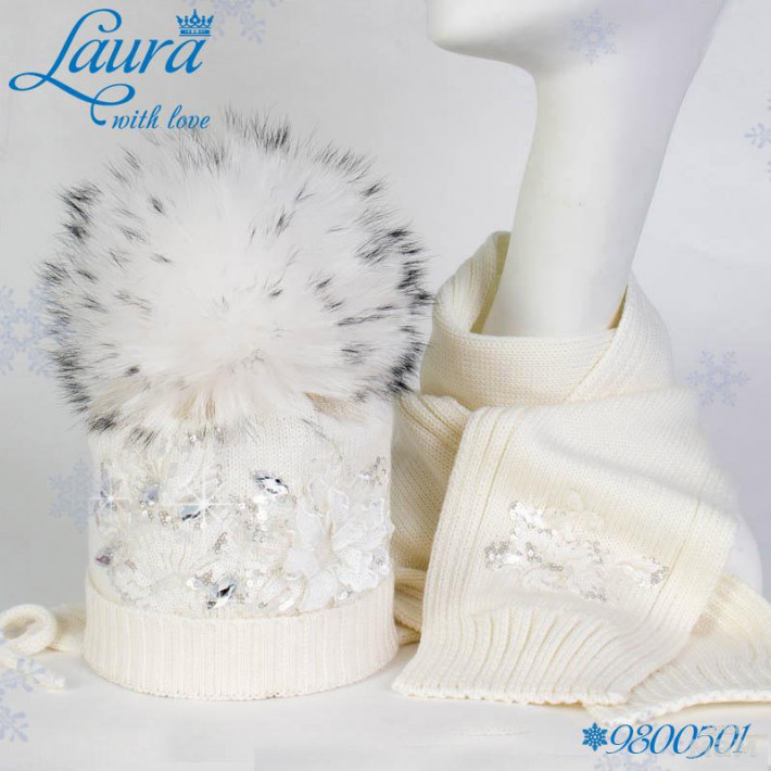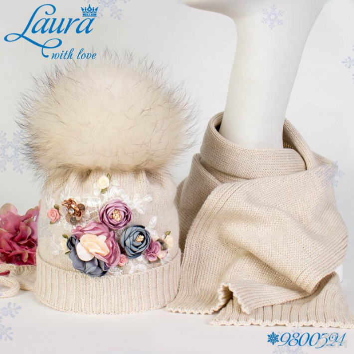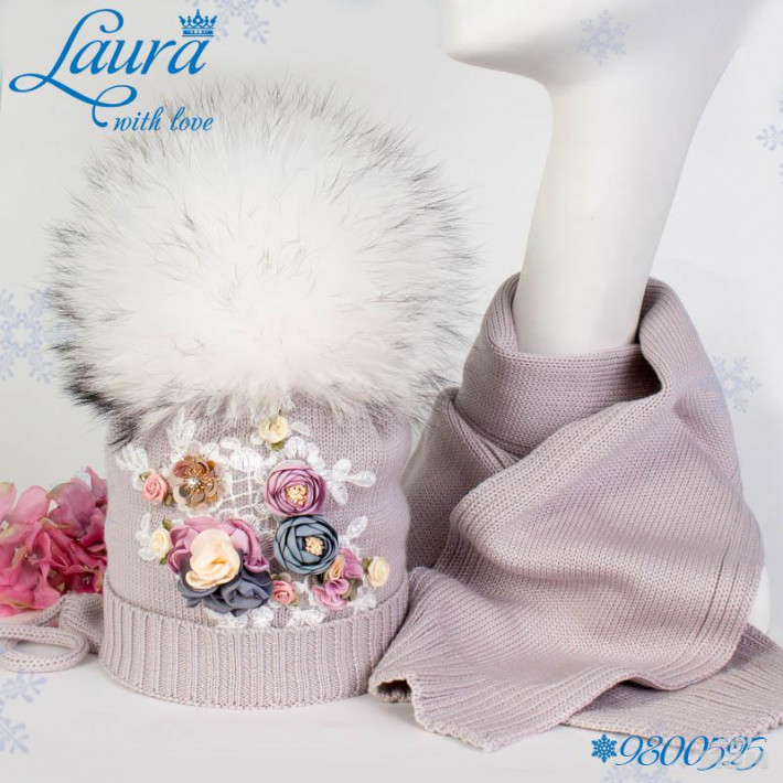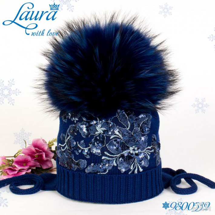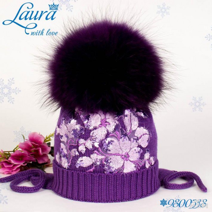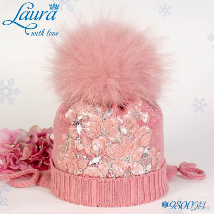 Эксклюзивные, зимние шапки для девочек и мальчиков с большими, натуральными помпонами от фирмы LAURA.