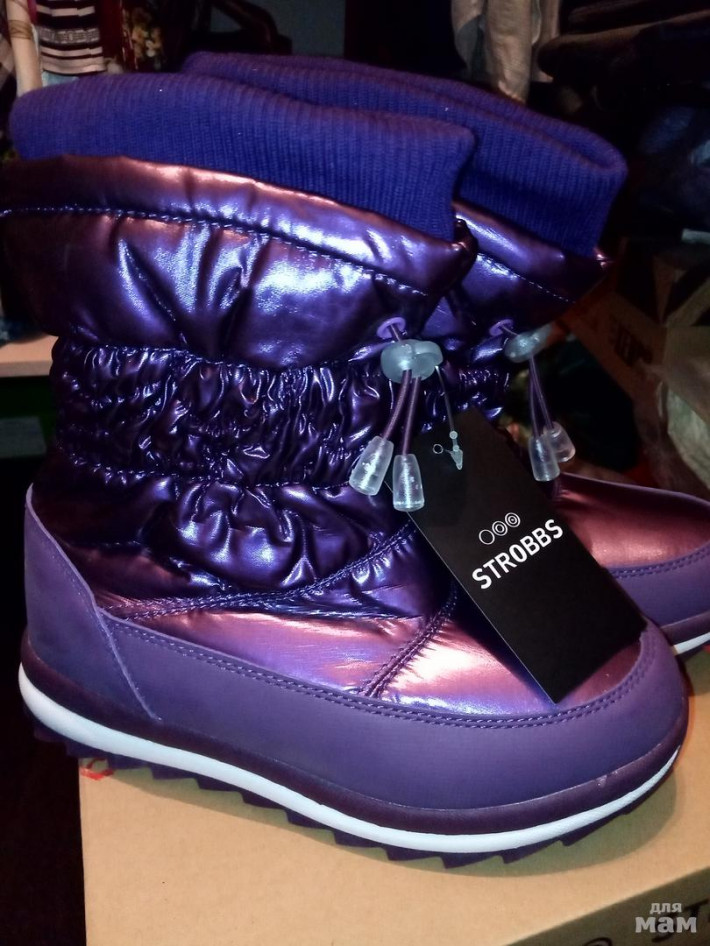 В наличии две пары р.35, по стельке 22,5см. Внутри мех искуств, но теплые. Мои дочери носили такие же, но др.размер, не мёрзли. Цвет фиолетовый.