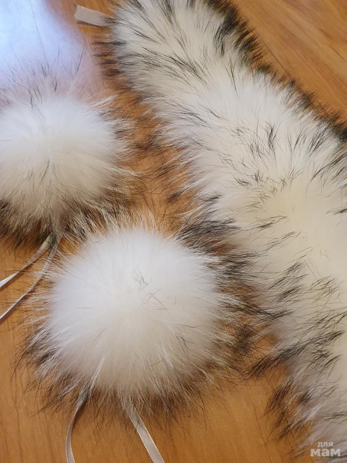 Новая опушка и 2 помпона. Опушка 60см подойдет на любой метод крепления. Помпоны можно на шапку или на шарф. Крепление ленты.