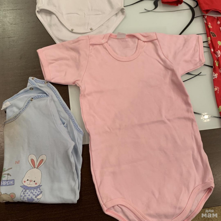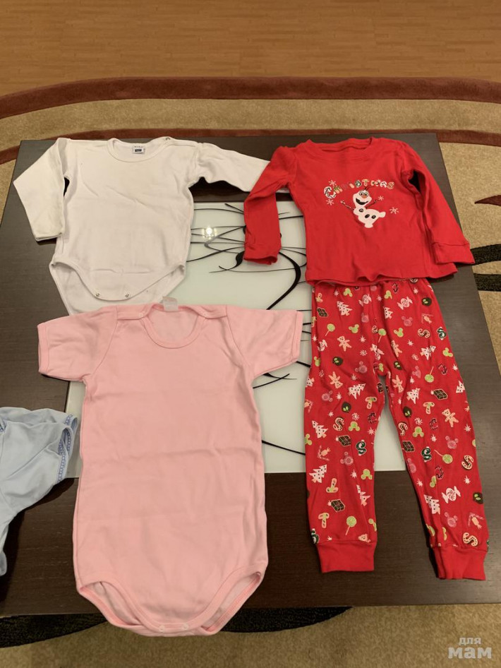Пижамы на 4 года. Красная в хорошем состоянии, боли розовый вроде не одевали, состояние нового, боди белый б/у( на груди есть пятнышки). Голубой отдам бесплатно, на груди пятна от сока( выводить не пробовали). Цена за все.