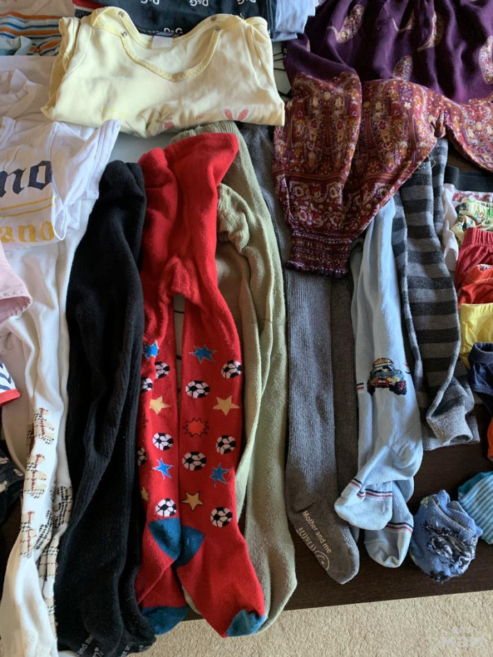 Все вещи без дыр и рванья. Всего 43 штуки. Каждая получается по 9 рублей.