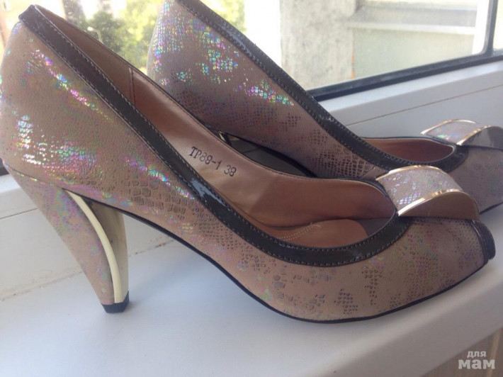 Новые туфли натуральная кожа,перламутр,стелька тоже кожа.Размер 38,по стельке 24 см,высота каблука 8 см.