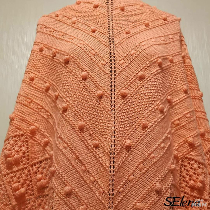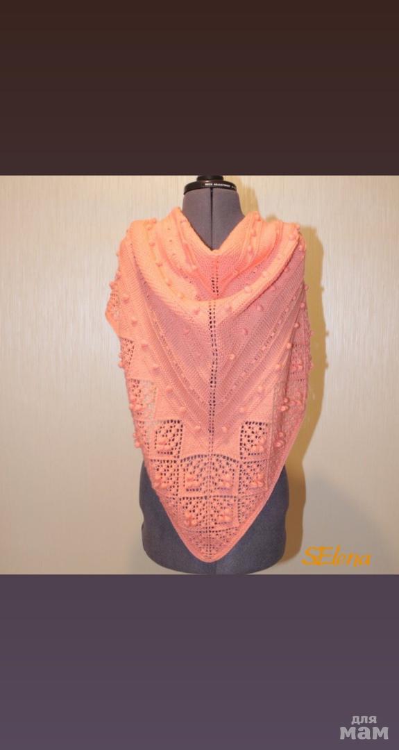 Красивый бактус, цвет персик. Тонкий и очень мягкий. Связан из пряжи 100% мериносная шерсть. Размер 177х80см. Могу связать в любой расцветке.