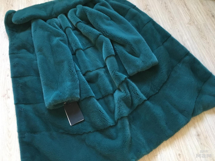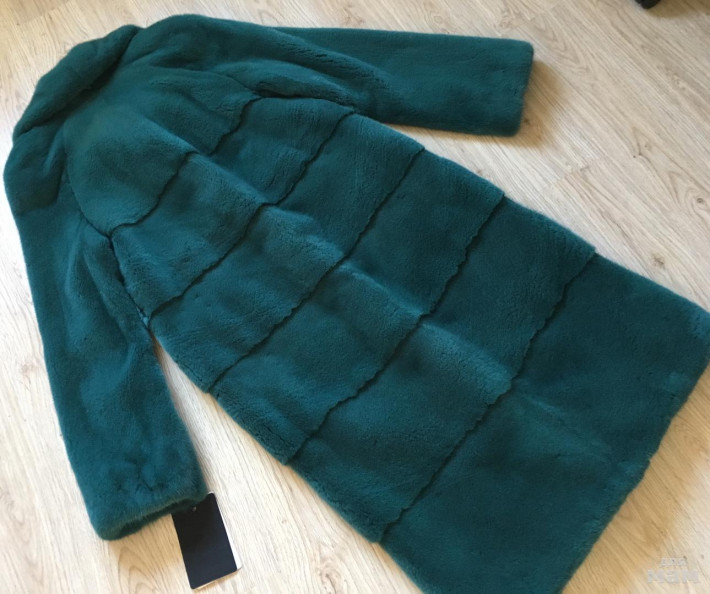 Паркетная раскладка меха,длина 115см, английский воротник, мех плюшевый,размер 42/44/46.