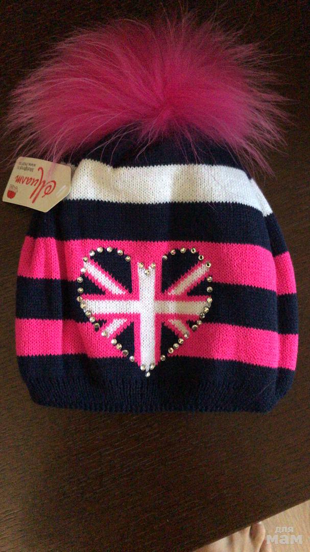 Шапка миалт, новая, размер 50-54, состав 30 % шерсть, двойная (демисезон); цвет темно-синий+ярко розовый, большой натуральный помпон, декор стразы, без завязок, 500 р +почта