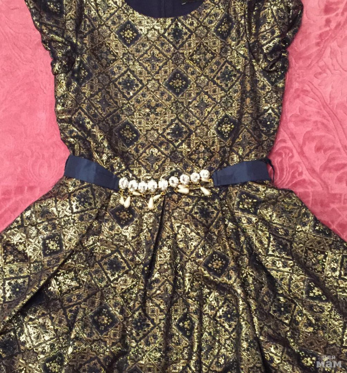 Изумительное платье! Из очень мягкой парчи,на подкладке. Девочка в нем просто принцесса!