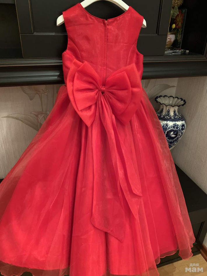 Платье в отличном состоянии. Очень эффектное. Цвет красный. Рассчитано на 128-140 рост.