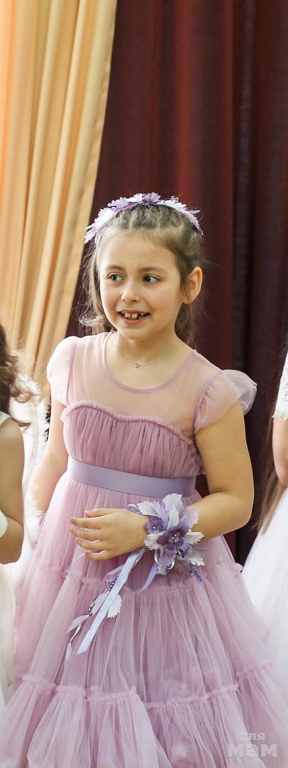 Маркировка 150,но мы одевали в 1 классе (рост был ниже) . За счет не фиксированной талии , можно с меньшего роста . Шикарное платье пена)))) . В идеале , одето 1 раз на утренник в школе и все ,больше случая не нашлось . Украшения в стоимость не входят , могу продать и их 1000р ( одно кружево стоило 600 р) браслет на лентах и композиция на съемных заколках, можно на волосы или к плечу платья , как позволит фантазия .