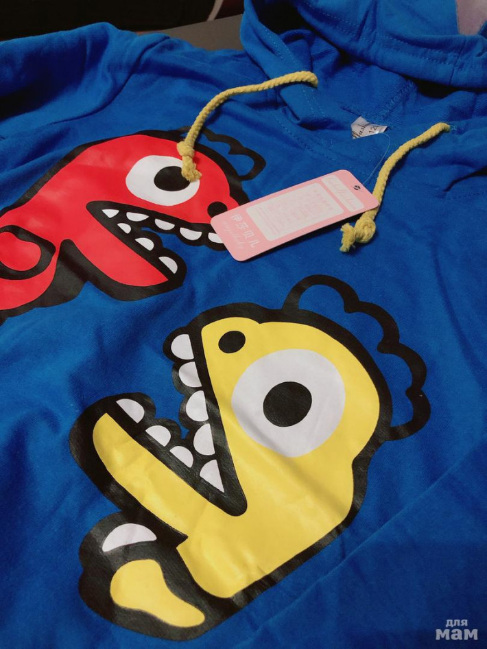 Худи с дракончиками и хвостом р-р 6-7 лет рост 120 (длина по спинке-44 см, рукав от плеча-40 см, между подмышками-34 см) -Цена 350 р