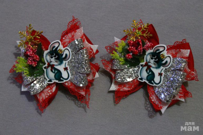 1 комплект с мышкой-снегурочкой на маленьких резинках