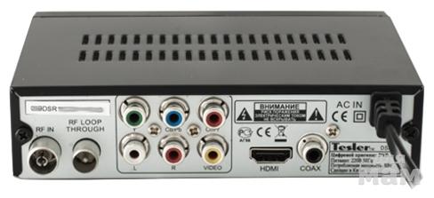 Имеет на лицевой панели кнопки включения и переключения каналов. Подключение к телевизору через тюльпан, HDMI, RGB, coax разъем.