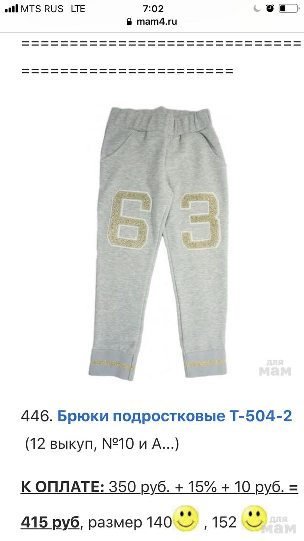 446. Брюки подростковые Т-504-2 (12 выкуп, №10 и А...)