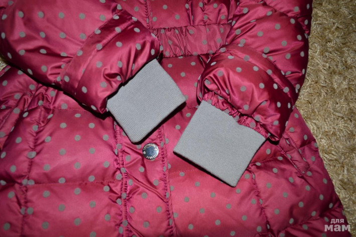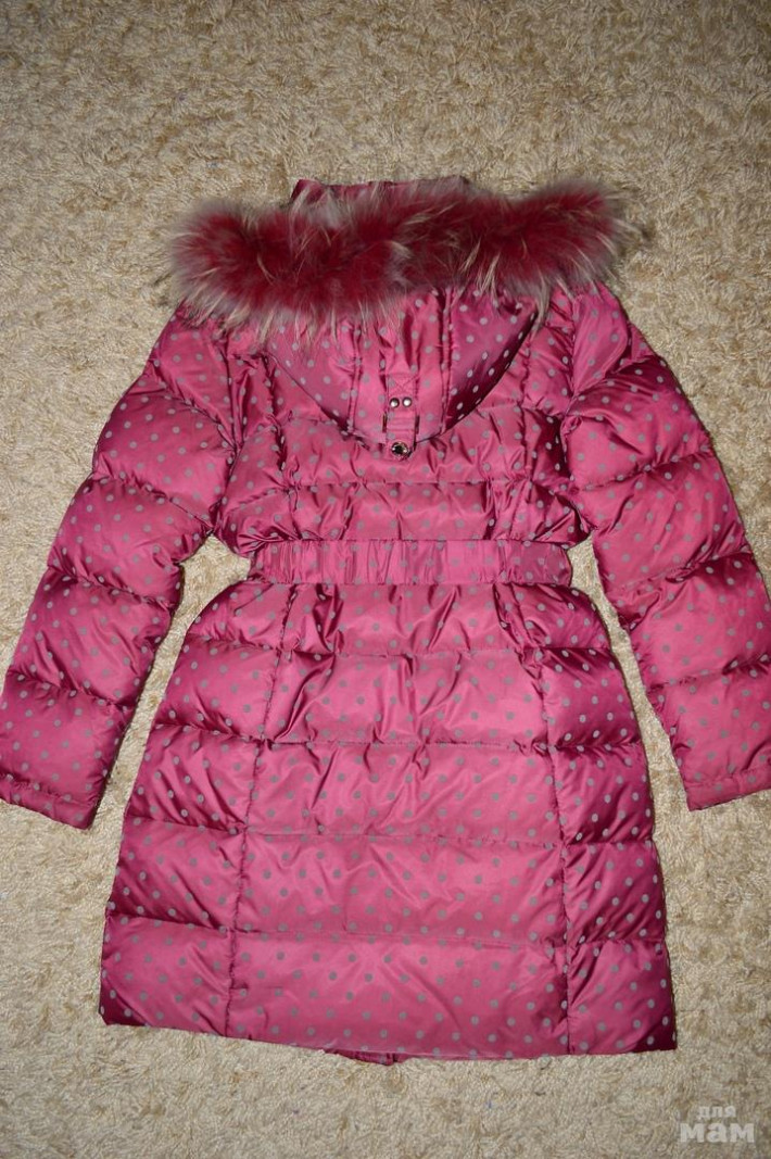 Пуховое пальто Alessandro Borelli р.9, очень теплое, цвет брусника-горох, горошки бархатистые, рукав 52 см, длина по спинке 75см, капюшон отстегивается, внизу по подолу утяжки. Верх 36%нейлон, 64%полиэстер, наполнитель 80%пух, 20%перо.