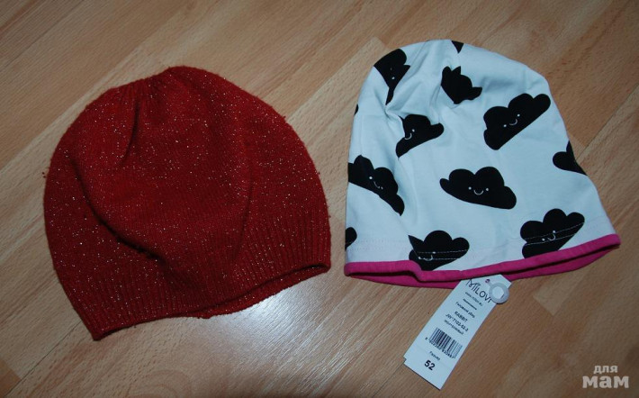 НОВАЯ шапочка с розовым кантиком и в ПОДАРОК шапочка б/у (сидит чудесно на голове!) и в ПОДАРОК чёрные лосины НМ. 600руб