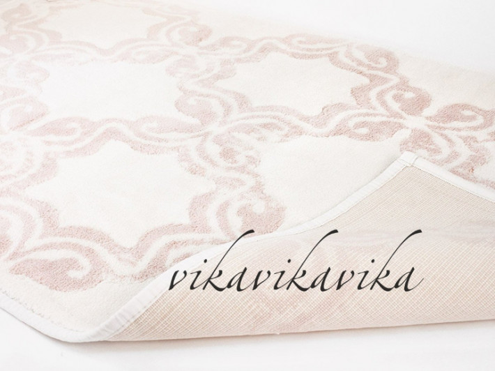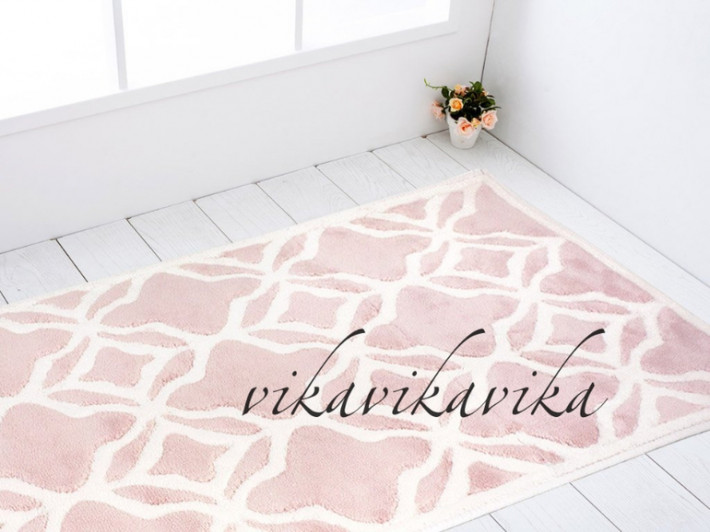 4) Изысканный и стильный коврик в ванную комнату с нежным кружевом. Кружевная отделка в виде нежных цветов по периметру всего коврика. Натуральный хлопок и высокая плотность махровой ткани(не менее 700 гр/м2) обеспечивают великолепную впитываемость и высокую стойкость материала. Широкая цветовая гамма, пересекающихся по тональности расцветок, позволяет великолепно комбинировать коврики в зависимости от зонирования ванной комнаты или расцветки отделочных материалов.