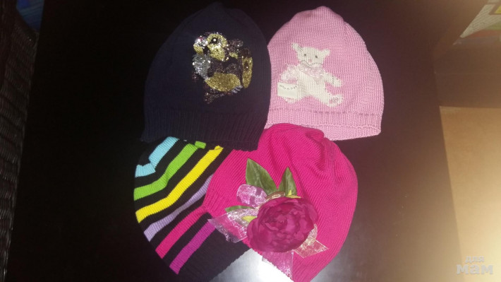 1. Шапочки на флисе, на 52-54см, одеты по 2-3разика.....на мой взгляд холодная весна-осень.