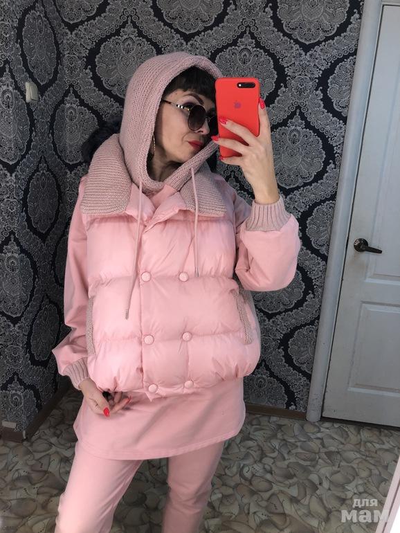 отлично подойдет девлчкам в положении, штнишки на резинке, а Худи удлинненая и свободной посадки