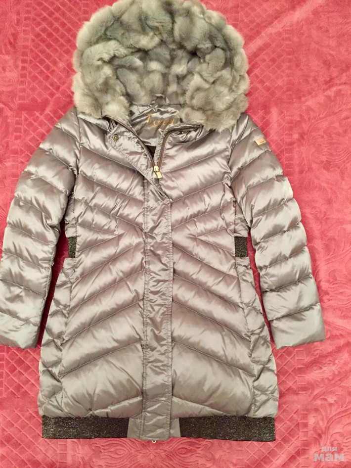 Очень тёплое и красивое пальто. Горло закрыто, есть большой тёплый капюшон. Состояние новой вещи. Длина 70см. Рукав 53см От 40см.