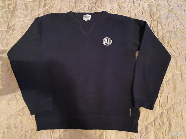 хлопковый свитер Armani, оригинал, 10 лет (140), цвет темно-синий, идеальный вариант для школы, очень хорошее состояние.