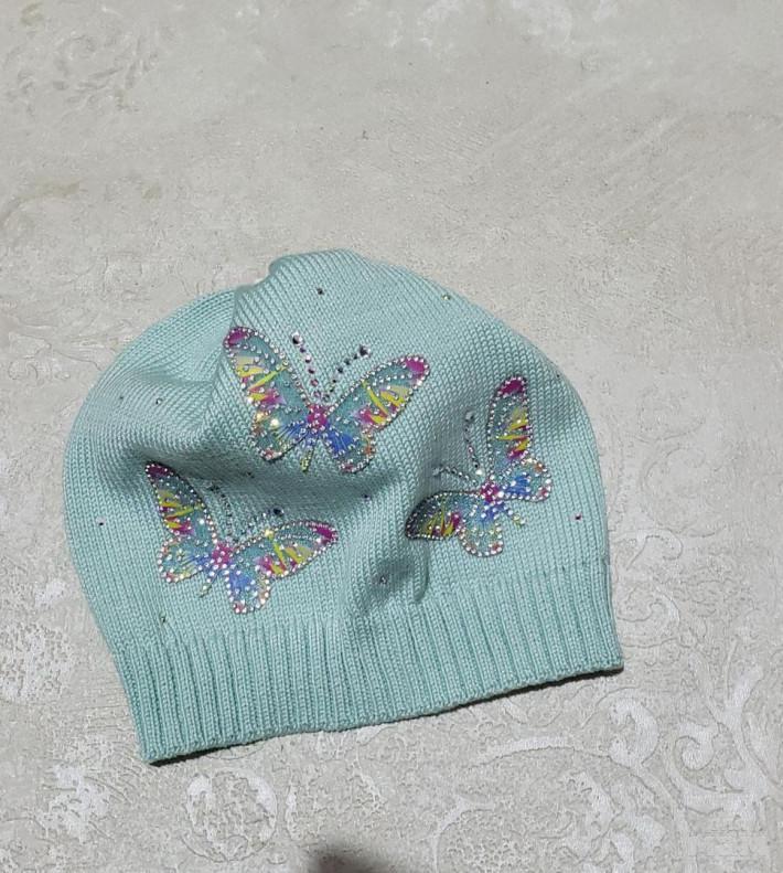 шапка расивейшего синего цвета, и очень красивый ультрамариновая синяя россыпь из заклепок. стильненькая вещица под джинсы) 50-53 и 53-56 - 850
