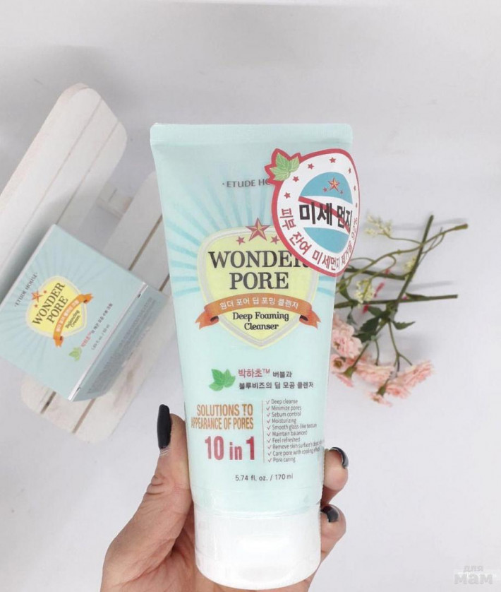 Очищающая пенка для умывания Etude House Wonder Pore Deep Foaming Cleanser, созданная для жирной, комбинированной и проблемной кожи. Пенка абсорбирует из пор все загрязнения, устраняет кожный себум, оставляя после себя идеально чистую, матовую и упругую кожу. Пенка эффективно регулирует работу сальных желез, сужает поры, лечит угревую сыпь, снимает воспаления. За счёт содержания в своём составе мяты даёт приятный освежающий и лёгкий охлаждающий эффект. Пенка прекрасно подойдёт для использования утром перед началом дня: очистит поры от кожного сала, активно вырабатывающегося ночью, взбодрит кожу, устранит утренние припухлости, снимает отёчность.