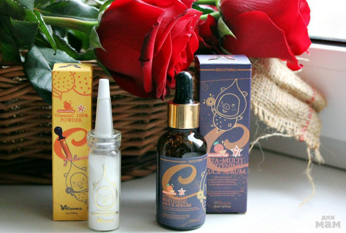 Аскорбиновая кислота обладает выраженным антиоксидантным действием, эффективно защищая кожу от повреждений ультрафиолетовым излучением, инициируют выработку собственного коллагена, способствуют повышению эластичности, упругости и увлажненности кожи, помогают затормозить процесс гликации (склеивание волокон коллагена глюкозой), который приводит к раннему увяданию кожи, уменьшает пигментные пятна и пост акне, выравнивает цвет лица и придает коже здоровое сияние.