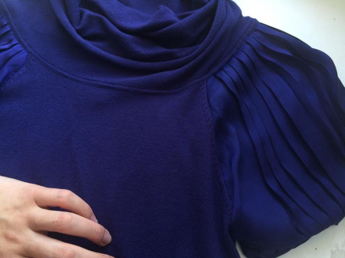 Рукава шёлк, сама блузка трикотаж, очень интересная. Для стройных девушек. В отличном состоянии, одета 1 раз. Очень красивый цвет
