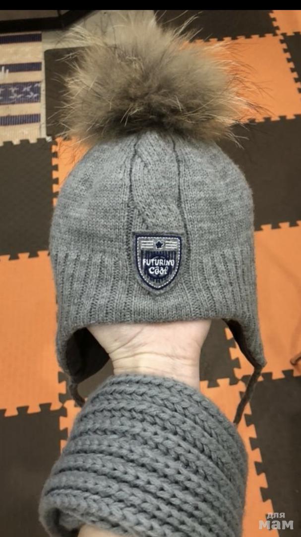 Комплект шапка с шарфом)))в отличном состоянии,на мальчика.помпон натуральный
