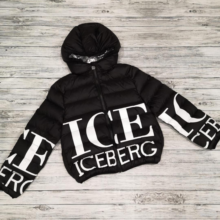 Куртка с принтом. Утеплитель натуральный пух. В черном цвете размер L, цена 9600 рублей. В синем цвете, размеры 4 и 6. Цена 9100 рублей.