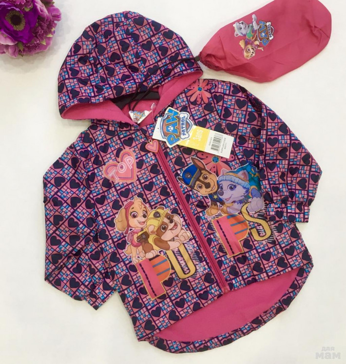 PAW PATROL Курточка-ветровка на флисе, убирается в мешочек, очень удобно брать с собой! Теплая весна-прохладное лето. Размеры: 3года 98см. и 4года 104см.