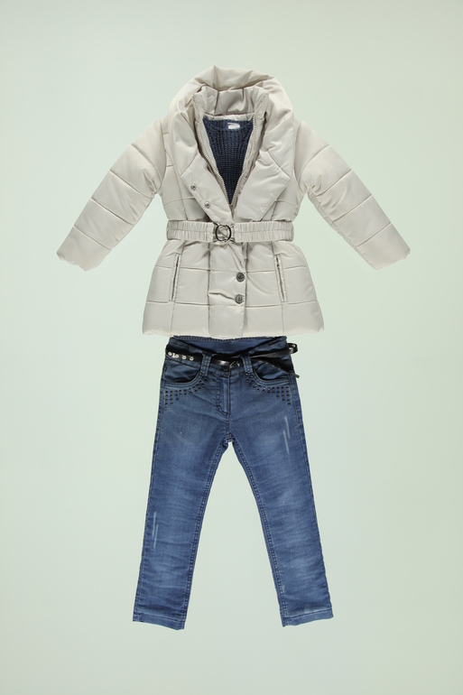Фото в реале сделаны при искусственном освещении, цвета немного искажены. Фактически цвета совпадают с каталожным фото. Замеры: КУРТКА: длина по спинке от воротника до низа 53 см ширина подмышками 40 см ширина от плеча до плеча 29 см плечо 6 см длина рукава по внешней стороне от плеча 41 см длина рукава по внутреннему шву от подмышки 31 см длина по спинке от воротника до пояса 28 см.ДЖИНСЫ: шаговый шов 55 см ширина по талии 31,5 см.ДЖЕМПЕР: длина по спинке 57 см ширина подмышками 34 см длина рукава по внутреннему шву от подмышки 38 см.